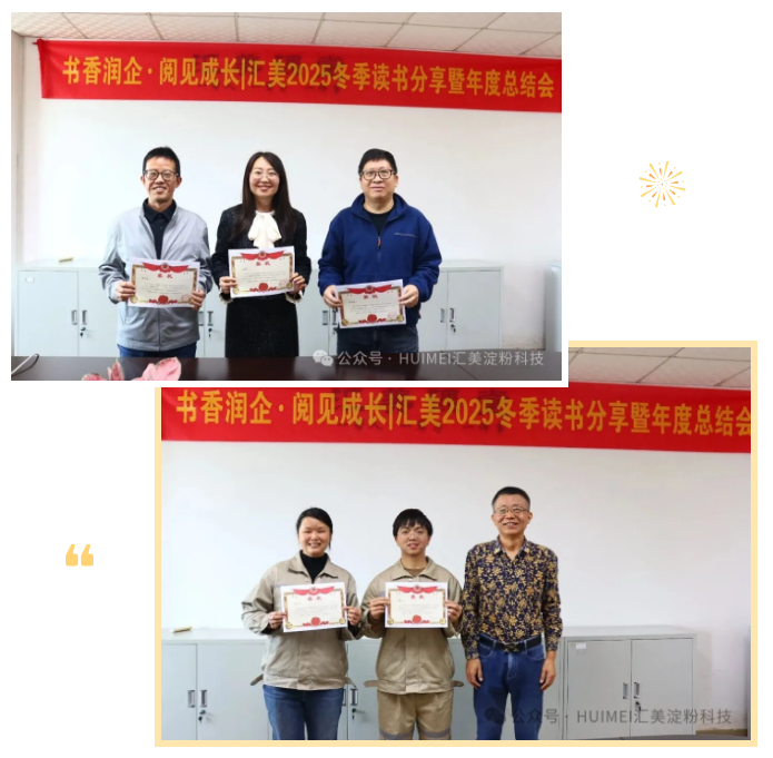 This event is a vivid epitome of Huimei's corporate culture construction. Reading and sharing have united the team's cohesion and shaped the company's soft power. Although the reading activity has come to an end, reading and thinking never cease. In the future, Huimei Starch will continue to use books as a medium and cultural people to promote the mutual growth of employees and enterprises, and steadily move forward on the path of high-quality development.